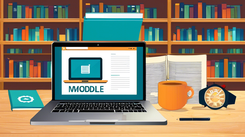 A laptop displays a vibrant Moodle interface, showcasing colorful theme options for e-learning, set on a desk with stylish decor and soft lighting.